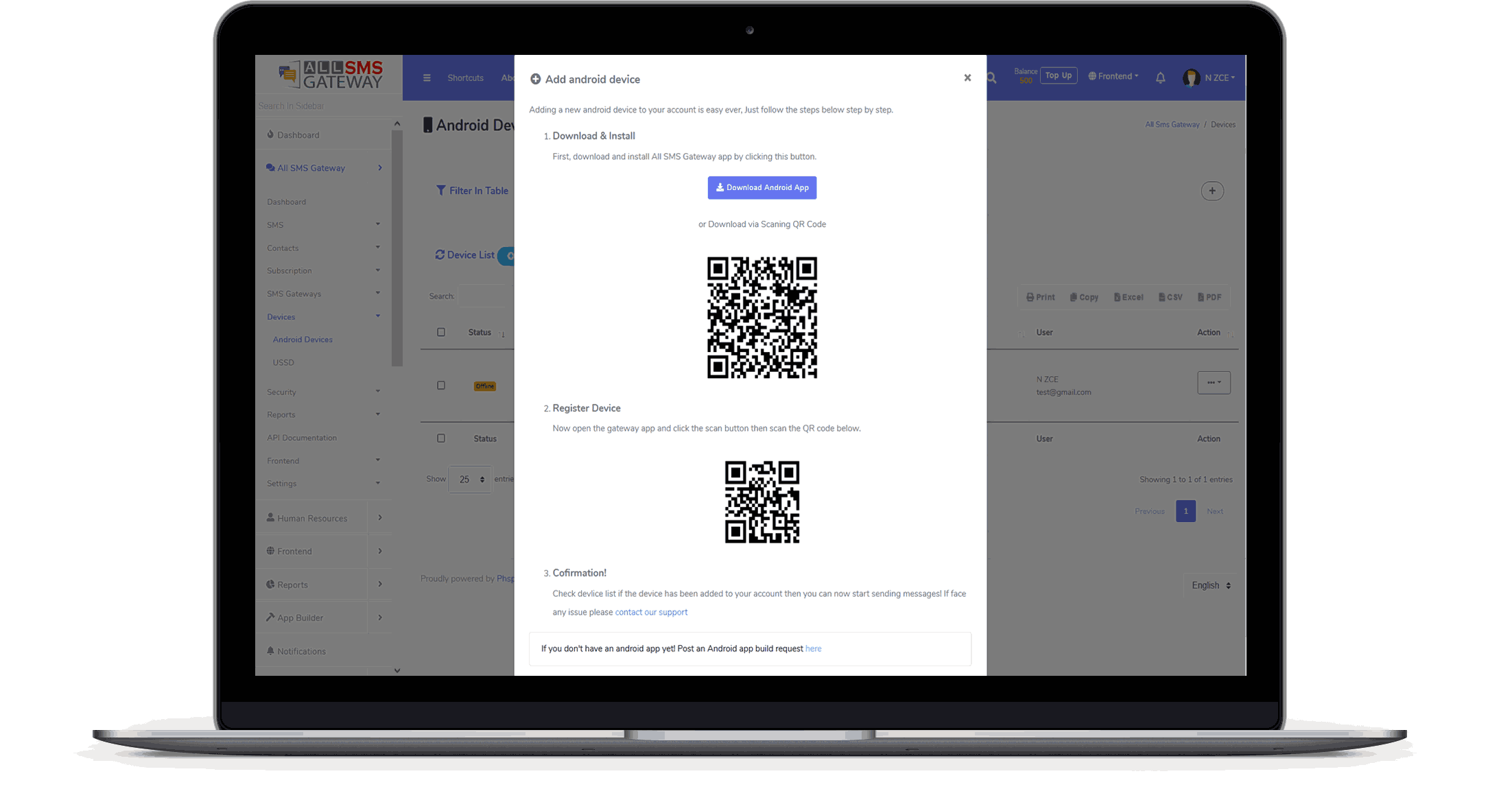 Send USSD requests using web panel or API. All the responses resulted from USSD requests will be visible in web panel. This feature requires a device with Android 8.0 or above.